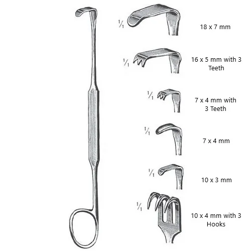 Meyerding Retractor - 10 x 4 mm with 3 Hooks, 18 cm (7 1/8")
